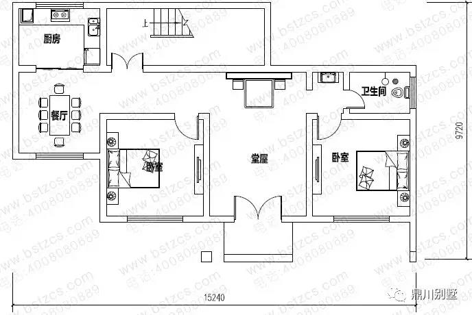 一 层:堂屋、2卧室、厨房、餐厅、卫生间