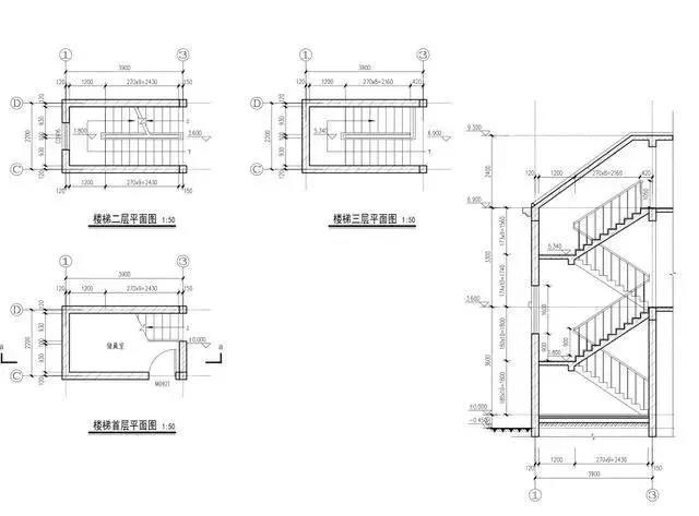3.剖面图:体现地、楼、屋面的构造和楼梯的形式和构造的图纸。