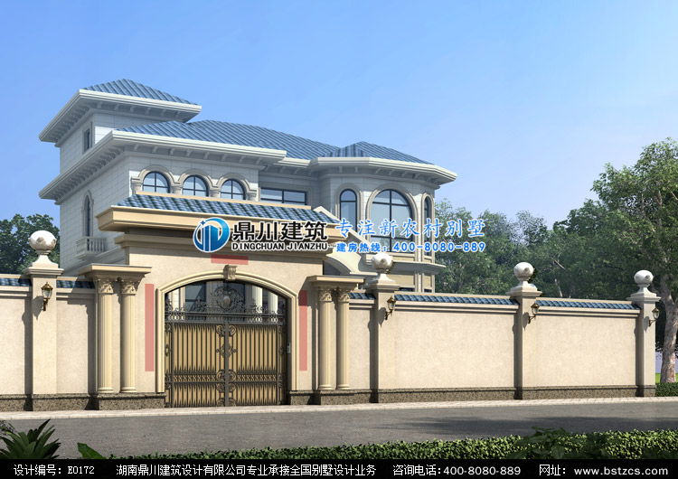 E0172漂亮的二层小别墅设计外观效果图,鼎川建筑别墅私人定制设计