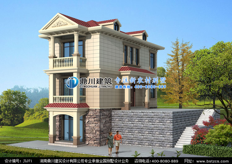 JL071农村三层别墅私人定制设计外观效果图,鼎川建筑三层自建别墅设计图纸