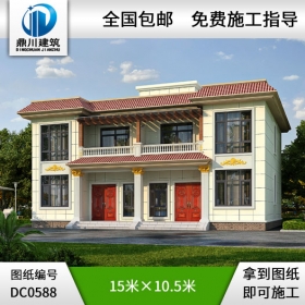 新中式二层带露台双拼别墅设计图纸_农村双拼自建房设计图,鼎川