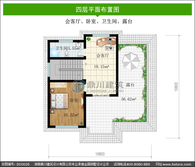 | 四 层: | 会客厅、卧室、卫生间、露台 | |||